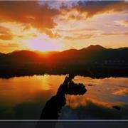 昆明:夕陽(yáng)沉入滇池 “橋”見琥珀黃昏