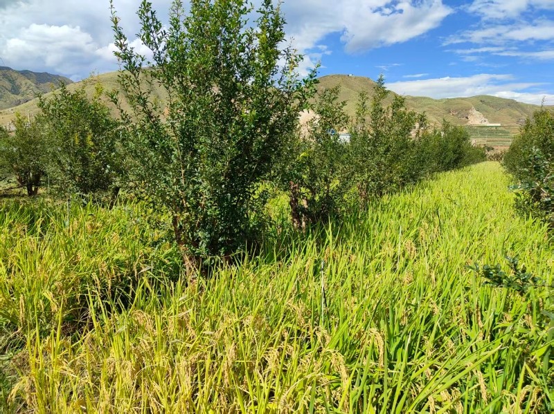 今年,濤源鎮(zhèn)在濤源村委會(huì)濤西村實(shí)施3畝旱地優(yōu)質(zhì)稻適應(yīng)性鑒定試驗(yàn),選用“旱優(yōu)73”品種,創(chuàng)新采用石榴—旱稻套種模式。該模式充分利用石榴生長(zhǎng)前期樹冠稀疏、遮蔭少的特點(diǎn),在行間同步種植旱稻,既實(shí)現(xiàn)了土地、光照與水肥資源的高效利用,形成“一地雙收”的良性循環(huán),又通過(guò)高矮作物搭配有效抑制雜草,顯著提升單位面積綜合效益。