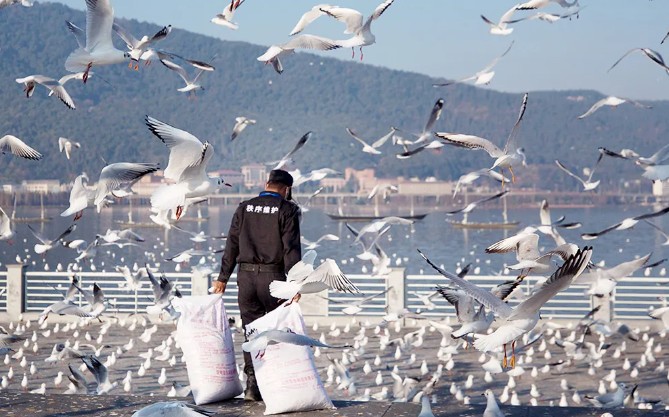 東北游客也被圈粉:“昆明氣候好、風(fēng)景好,前些年我們也來(lái)過(guò),紅嘴鷗集體盤(pán)旋的場(chǎng)景太壯觀(guān)了!”