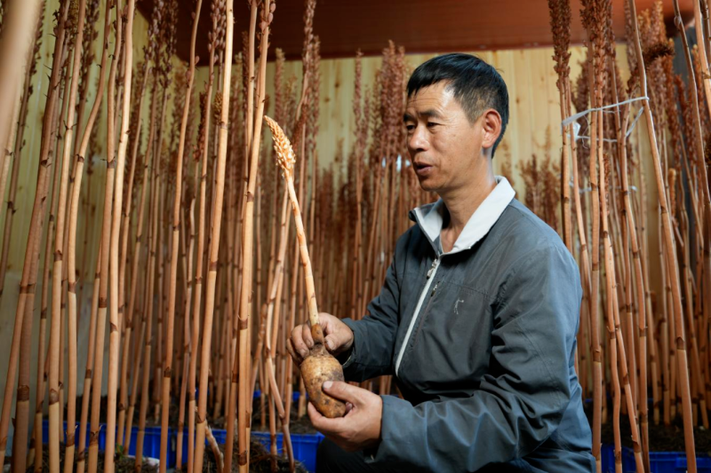 段金華利用家鄉(xiāng)自然條件發(fā)展天麻種植,建立"四個統(tǒng)一"模式,2024年合作社產(chǎn)值超200萬元,戶均增收過萬元。