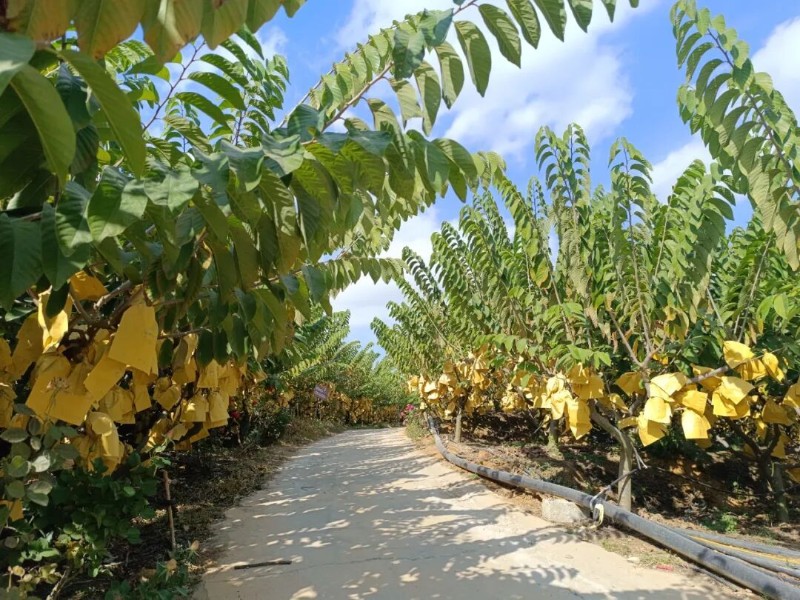 眼下正值釋迦果冬季果套袋管理的關(guān)鍵時(shí)期,在云縣康暉農(nóng)業(yè)科技開發(fā)有限公司的鳳梨釋迦種植基地里,500余畝果樹綠意盎然,飽滿的果實(shí)掛滿枝頭,微風(fēng)輕拂,果香撲鼻而來(lái)??偨?jīng)理?xiàng)顟c穿梭在林間,親力親為地帶領(lǐng)20余名工人嚴(yán)格按照技術(shù)規(guī)范進(jìn)行修剪、疏果、清洗、套袋等工作,一首繁忙的豐收序曲正在果園中奏響。