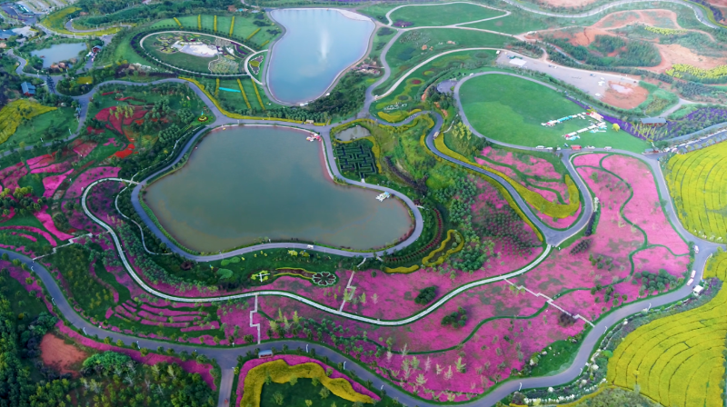 走進太平湖森林公園,五彩花海與碧波交相輝映。過去,這里曾是一片石漠化嚴重的荒山。