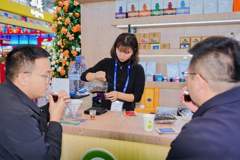 云咖吧臺(tái)通過(guò)手沖品鑒直觀傳遞云南咖啡“濃而不苦、香而不烈、略帶果酸”的風(fēng)味特質(zhì);