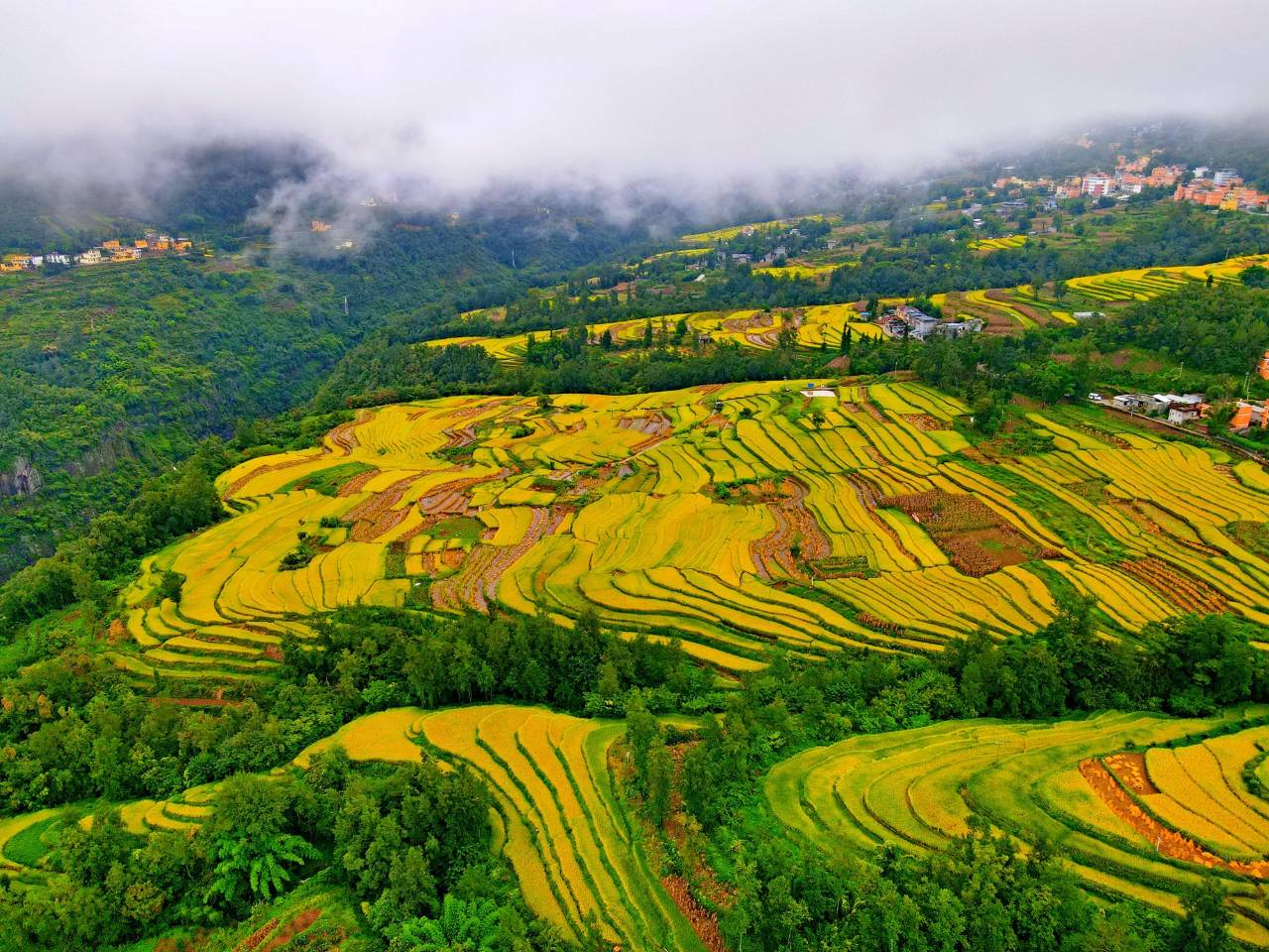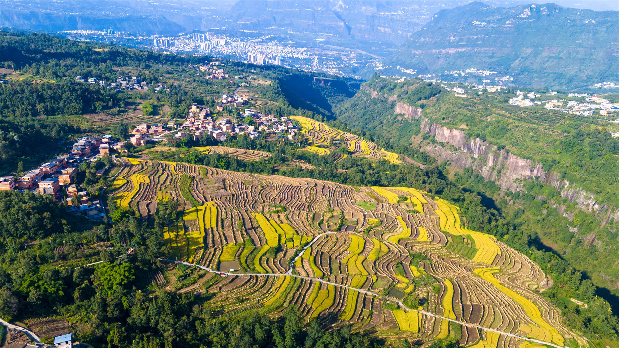 金秋時(shí)節(jié),云南省昭通市永善縣溪洛渡街道新拉村的千畝梯田層疊蜿蜒,沉甸甸的稻穗低垂搖曳,空氣中彌漫著沁人心脾的稻香。