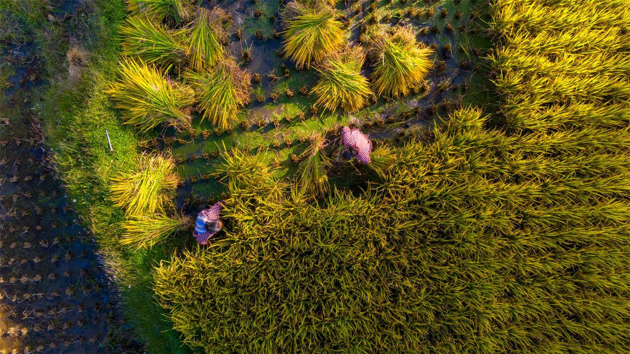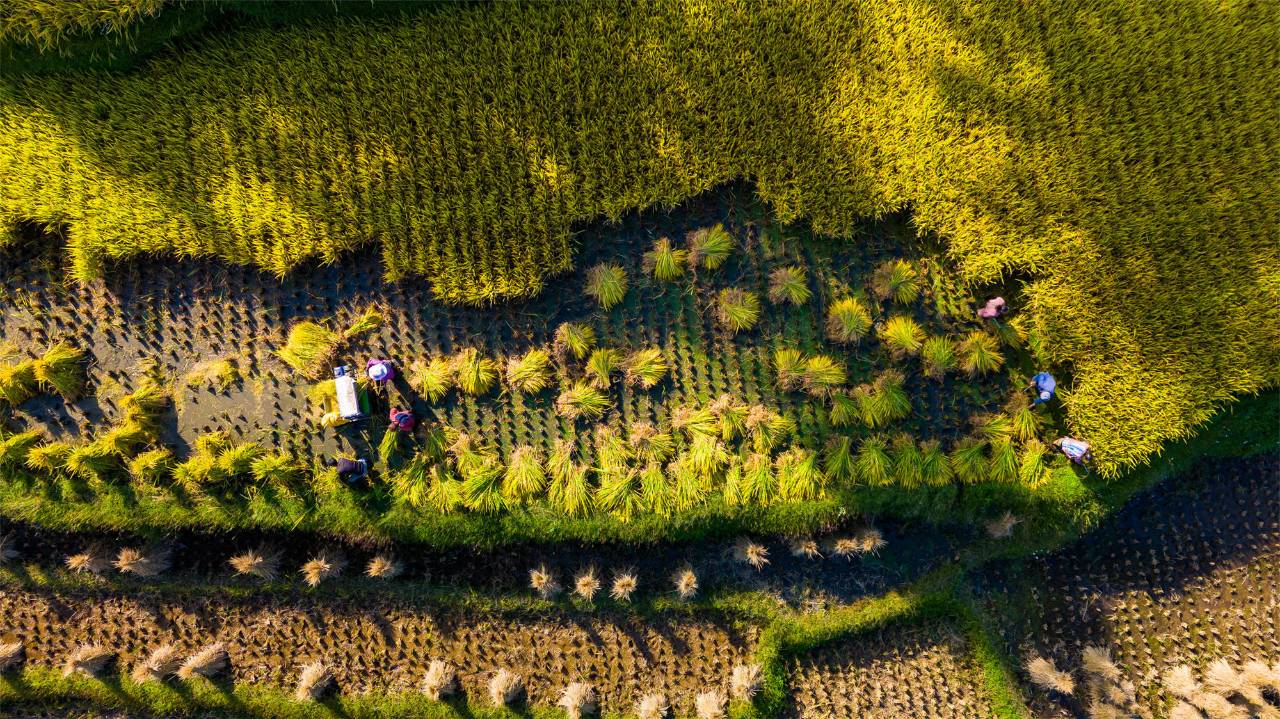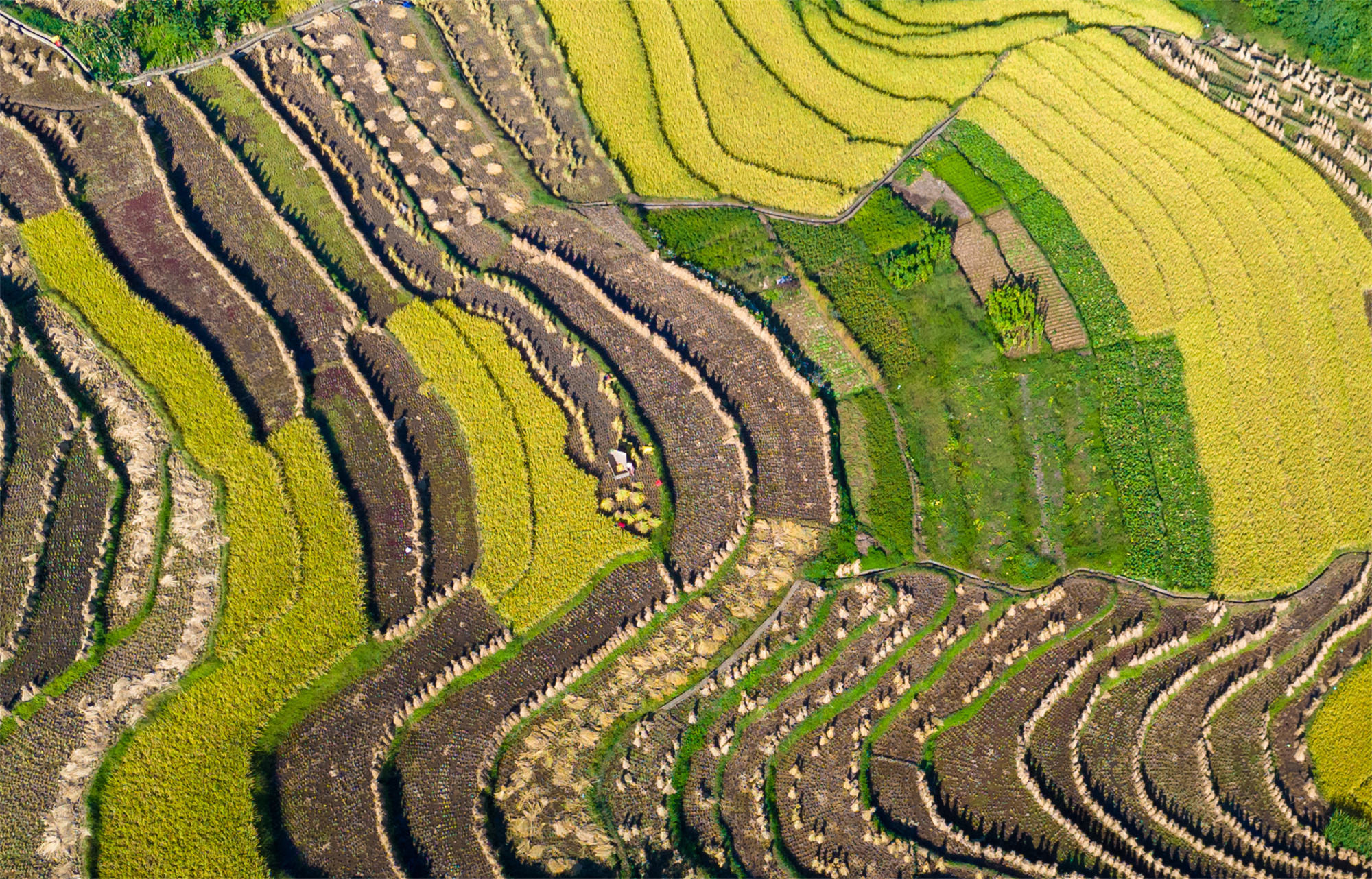 梯田如畫,稻浪翻金,農(nóng)人辛勤勞作,豐收的喜悅在田間綻放。