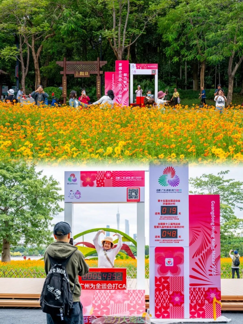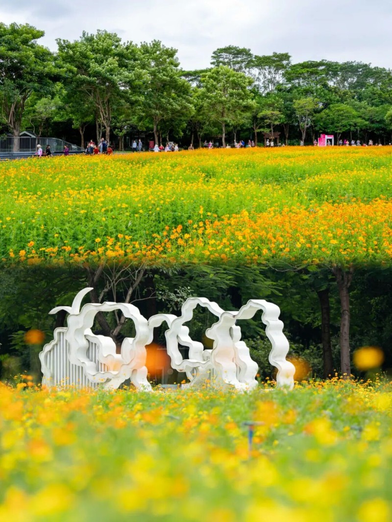 ?? 海珠湖畔|硫華菊金色浪潮依然燦爛,花海中點綴全運裝置和運動小人,活力滿滿,出片率100%