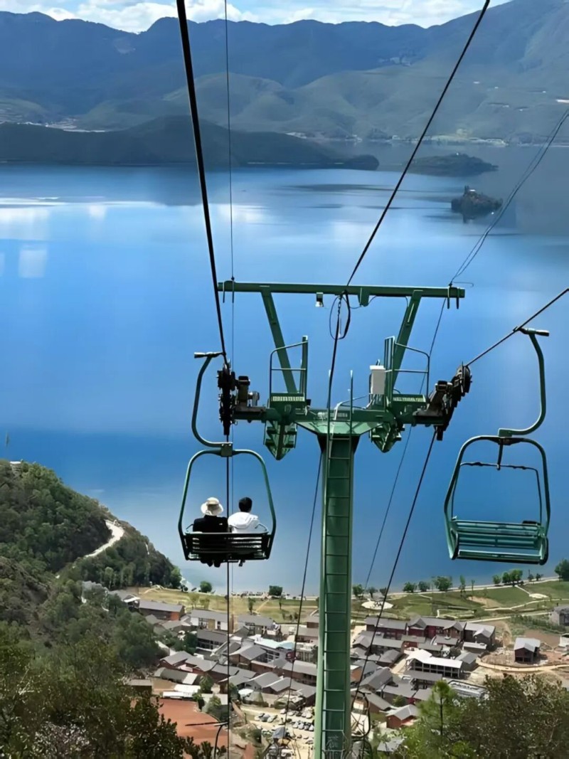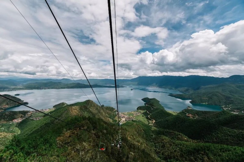 換個視角瞰湖光山色,解鎖“云端瞰湖”的全新視角。坐上索道可以在高空俯瞰瀘沽湖的碧藍湖面,湖水隨光線變化呈現(xiàn)出淺藍、深藍、墨綠等多種色彩,也是別有一番意境。