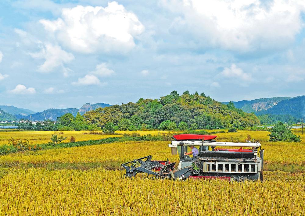 農(nóng)業(yè)農(nóng)村部最新農(nóng)情調(diào)度顯示,2025年全國秋糧收獲近七成。圖為10月17日,在浙江省臺州市仙居縣雙廟鄉(xiāng),農(nóng)機(jī)手駕駛農(nóng)機(jī)收割晚稻。
