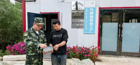 深入施業(yè)區(qū)內(nèi)九翠酸菜加工廠等企業(yè),開展森林防火安全專項(xiàng)指導(dǎo)。通過現(xiàn)場(chǎng)培訓(xùn)、發(fā)放宣傳資料等方式,講解野外作業(yè)防火規(guī)范與應(yīng)急處置流程,督促企業(yè)完善防火預(yù)案、配備滅火器材,定期開展隱患排查,杜絕作業(yè)期間火災(zāi)風(fēng)險(xiǎn)。