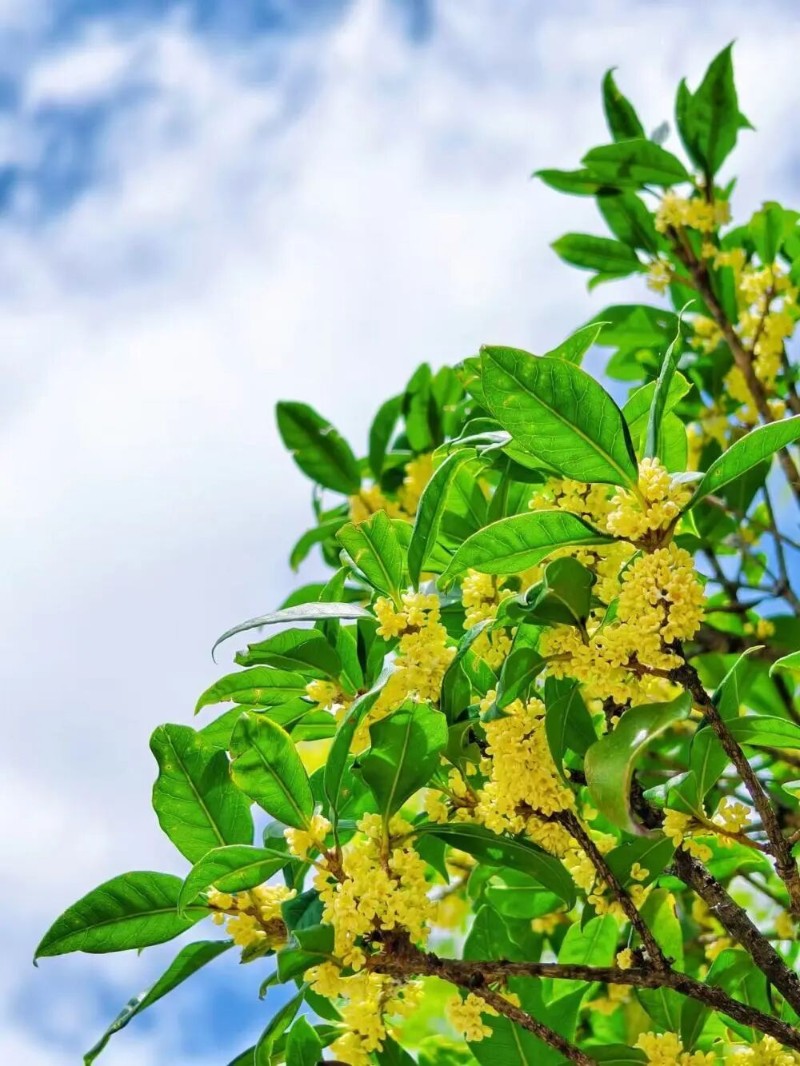 于是你便開始尋它。仰起頭,在油綠發(fā)亮的葉子底下,一簇簇、一叢叢,那些米粒般大小的黃花,正羞怯地藏于枝葉當中。它們是這樣的小,小得幾乎算不得是一朵花,倒像是哪個巧手的婦人,用最細的繡花針,蘸了淡淡的金粉,在墨綠的緞子上,不經(jīng)意間點出的斑點。它們擠作一團,熱熱鬧鬧的,卻又靜悄悄的,仿佛知道自己生得不起眼,便索性不與桃李爭春,不與荷菊爭秋,只將這滿腹的香氣,化作無聲的言語,訴說著一個關(guān)于秋天的故事。