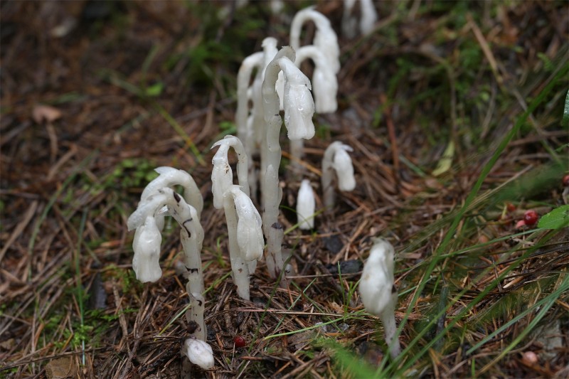 水晶蘭屬杜鵑花科,是一種典型的腐生植物。其通體潔白,全株不含葉綠素,依靠共生真菌提供養(yǎng)分,多分布于海拔800至3000米冷涼濕潤的針闊混交林中。水晶蘭每年僅有40余天露出地表,植株雖小卻形態(tài)精致,通體晶瑩如玉,在幽暗林間泛著淡淡的微光,被人們稱為“幽靈之花”,極具觀賞價值。2013年,水晶蘭被列入《中國生物多樣性紅色名錄——高等植物卷》,級別為近危(NT)。
