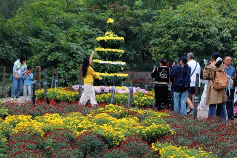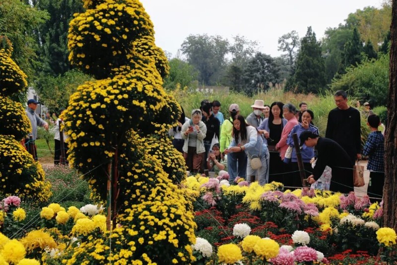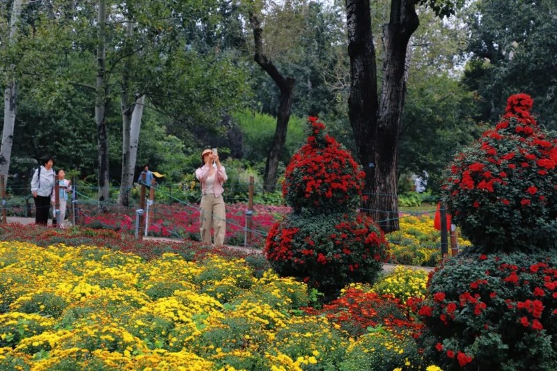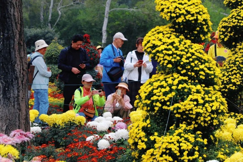 位于科普館西側(cè)的核心展區(qū)是游客們最為喜愛的打卡點(diǎn),在這里斑斕多彩的小菊次第開放,造型多樣的藝菊點(diǎn)綴其間,令人目不暇接,游客們徜徉花海當(dāng)中,感受秋日盛景。