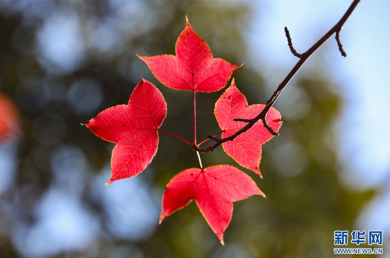 火紅的楓葉(11月1日攝)。新華網(wǎng)發(fā)(鄭益 攝)