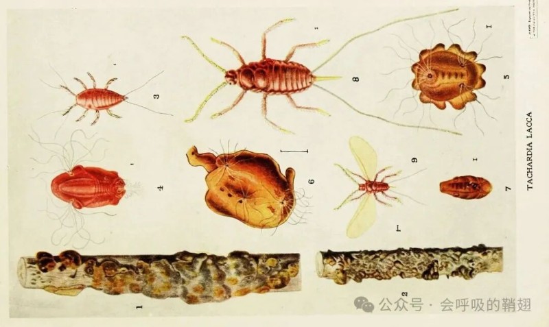 紫膠蚧及其蟲(chóng)膠管圖,Harold Maxwell-Lefroy于1909年繪制