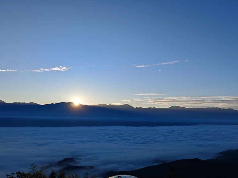 遠(yuǎn)山如黛,云海開始漫卷,仿佛天地鋪開了一幅水墨長卷。就在這氤氳流動的靜謐中,東方漸明——那是一抹試探的暖色,繼而化作破曉的金芒,從云隙間奔涌而出。