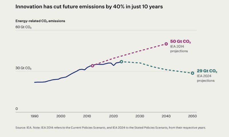 如果我們能持續(xù)投資創(chuàng)新,那么在未來十年,我們將獲得可負擔、可規(guī)?;牧闾夹录夹g(shù)。加上現(xiàn)有工具的持續(xù)改進,到本世紀中葉,全球排放將進一步下降,貧富國家之間的差距也將大大縮小。