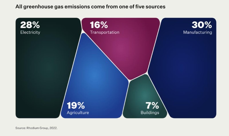 圖說:電力、交通、制造業(yè)、農(nóng)業(yè)、建筑是碳排放主要部門。