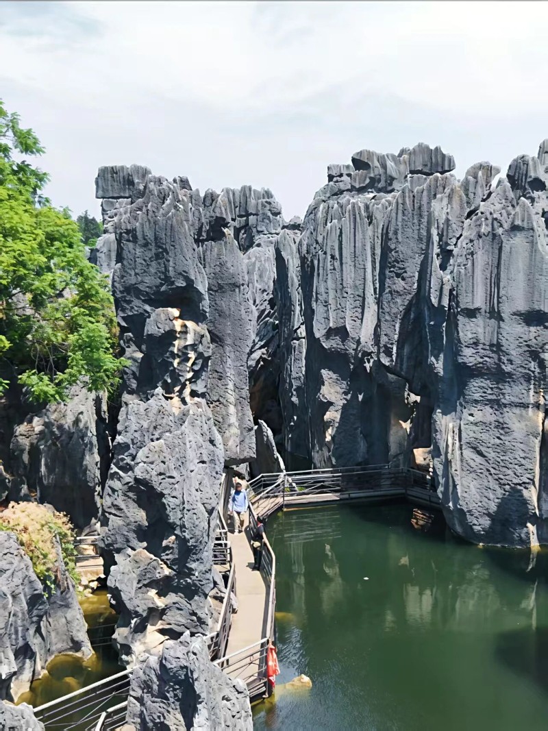 從景區(qū)入口乘觀光車直達(dá)“大、小石林景區(qū)”,先逛大石林,跟著指示牌走“劍峰池-望峰亭-雙鳥渡食”路線,望峰亭是俯瞰石林全景的最佳點(diǎn)位,一定要拍照!