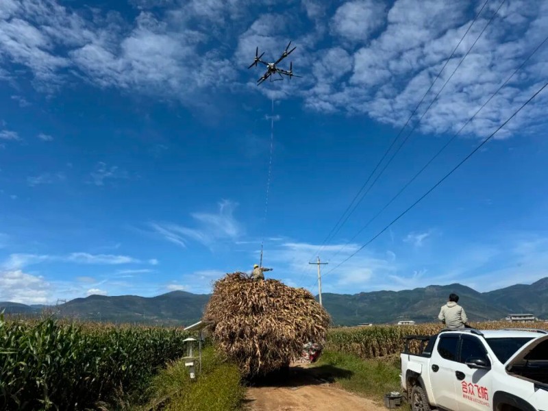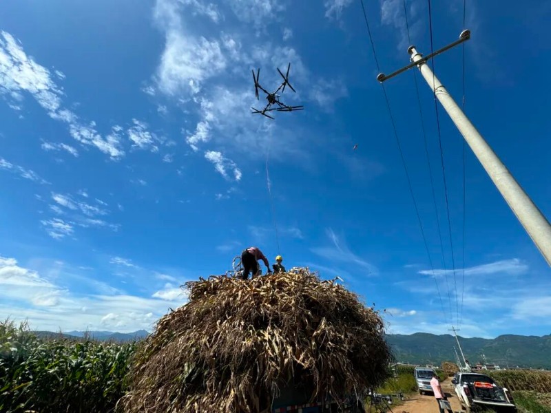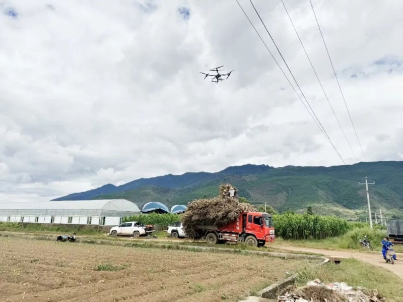 “以前收割青貯玉米,光是搬運就得雇好多人,要是碰上下雨天,特別容易耽誤收割進度。現(xiàn)在有了無人機,我們只需要把吊帶系在捆好的玉米稈上,玉米稈就像長了翅膀一樣‘飛’到車上,又快又省心?!苯鸲锗l(xiāng)金鎖村村民李鶴林一邊裝車一邊笑著說道。大理玉豐農(nóng)業(yè)科技有限公司今年首次引入無人機參與青貯玉米的搬運和測產(chǎn)工作,借助科技的力量,僅需要十幾秒就能完成一次運輸任務(wù)。以往人工搬運需要花費3小時至5小時才能完成的工作量,如今無人機僅僅需30至40分鐘就能輕松搞定。這一轉(zhuǎn)變,不僅大幅縮短了搬運時間,讓收割工作更加高效有序,還顯著降低了人工成本,為企業(yè)節(jié)省了大量開支。