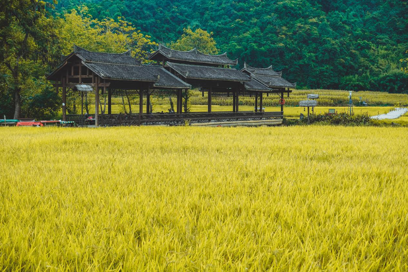 “林盡水源,便得一山,山有小口,仿佛若有光……”陶淵明筆下的意境,恰似為壩美村量身定制。乘船駛?cè)胗陌瞪衩氐娜芏?,仿若穿越時(shí)空隧道;待出洞那一刻,眼前豁然開朗:青山環(huán)伺,綠水潺潺,阡陌田園鋪展其間,清新空氣裹挾著自然靈氣撲面而來。這份“入洞幽暗、出洞開闊”的奇妙,讓久居都市的人瞬間找到身心休憩的歸處,宛如走進(jìn)千年詩意畫卷。
