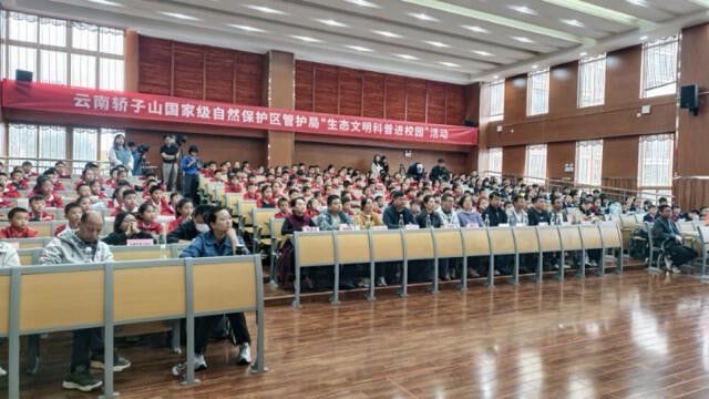 活動內(nèi)容豐富多樣,上午,云南轎子山國家級自然保護區(qū)科研所高級工程師李子光開啟科普講座,用通俗語言和真實案例講解轎子山珍稀動植物及其保護價值,激發(fā)同學們的好奇心與探索欲。昆明市林草局陳美靜老師隨后組織趣味有獎問答互動,“林麝屬國家?guī)准壉Wo動物?”“國家一級保護動物?!薄绊殢浖t豆杉屬國家?guī)准壉Wo植物?”“國家一級保護植物。”同學們踴躍搶答,在互動中深化生態(tài)知識理解,生態(tài)意識悄然萌芽。