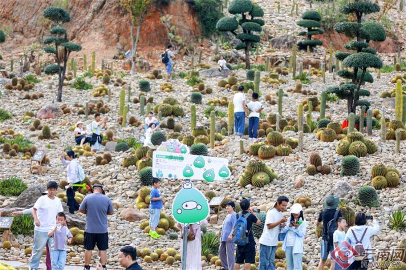 市民游客漫步在石漠化公園,了解“荒山蝶變”的綠色故事。胡妤雅 攝