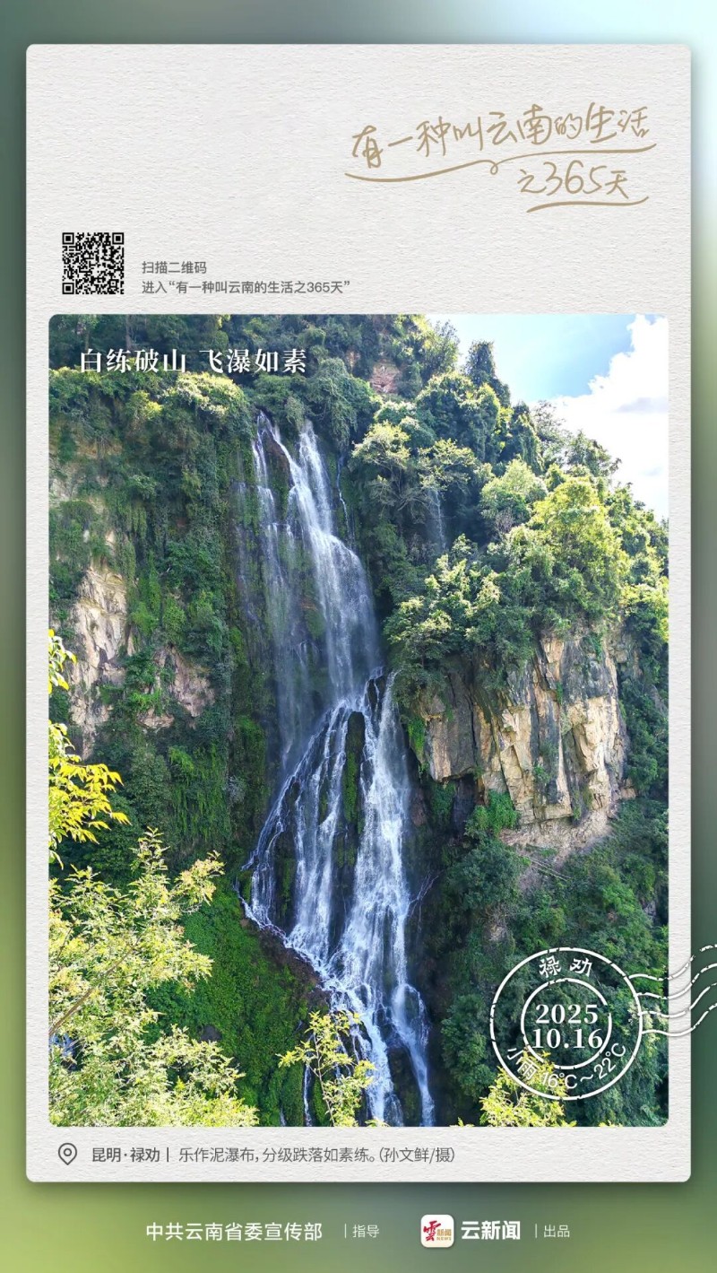 在云南省昆明市祿勸彝族苗族自治縣烏蒙山深處,藏著一處秘境——樂(lè)作泥瀑布。它位于群山之中,三疊飛瀑自崖間奔涌而下,氣勢(shì)磅礴,又各具神韻。