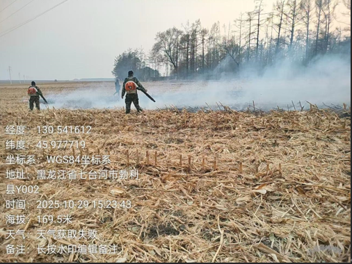 一經發(fā)現(xiàn)秸稈焚燒情況,立即使用滅火設備快速撲滅明火,迅速有效控制火勢蔓延,防止復燃。