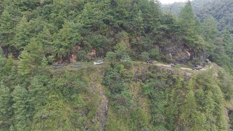 從空中俯瞰,車輛在綠意蔥蘢的林海間蜿蜒盤旋、向上攀登,宛如一條條“流動(dòng)的銀線”,與秋日里的翠綠植被相映成趣,勾勒出一幅生動(dòng)鮮活的山野出行圖景。隨著海拔的升高,城市的喧囂漸漸消散,夏日殘留的燥熱也被山間清涼的空氣取代,車內(nèi)充滿了秋天的涼意。這段越野路線極具挑戰(zhàn)性,彎道密集、林木茂密,路面更是凹凸不平,既有陡峭的爬坡、刺激的沖坡路段,還需涉水通行,每一處路況都讓越野愛好者直呼“過癮”,盡情釋放著戶外運(yùn)動(dòng)的激情。兩個(gè)多小時(shí)后,車輛陸續(xù)抵達(dá)終點(diǎn)。