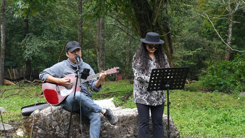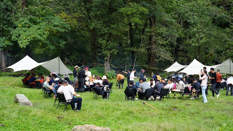 稍作休整后,下午2點(diǎn)25分,車隊(duì)開啟返程之旅。途中,主辦方在草甸活動(dòng)點(diǎn)精心籌備了一場小型露天音樂會(huì)。吃著燒烤聽著歌,人們在山野間找到了假期的愜意。