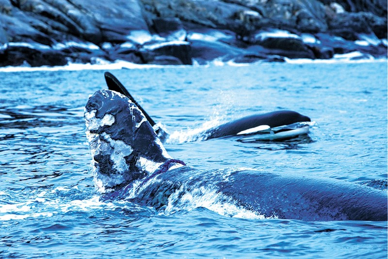 攝影師意外發(fā)現(xiàn)一頭虎鯨傷痕累累,身上還纏繞著藍(lán)色的塑料繩。陳建偉懾
