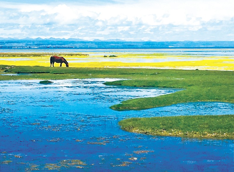《湖畔風(fēng)光》:一張色彩豐富、恬靜美好的青海湖風(fēng)光照。陳建偉攝