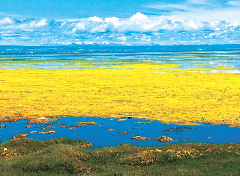 攝影師走近發(fā)現(xiàn),背景中的黃色,其實是一種叫剛毛藻的藻類,它的出現(xiàn)說明該區(qū)域的水質(zhì)富營養(yǎng)化了。陳建偉攝