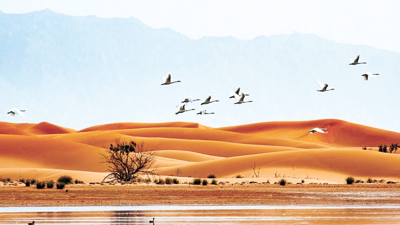 《水侵沙島》:由于環(huán)境變化,青海湖東北方向產(chǎn)生了大片流動沙丘,同時,冰川加速融化導(dǎo)致青海湖水位上升,上漲的湖水將沙島逐漸淹沒,形成這一畫面。陳建偉攝