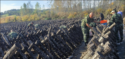 9月28日,河口林場組織職工開展今年新種植木耳段木耳的采摘工作,一派豐收忙碌景象。
