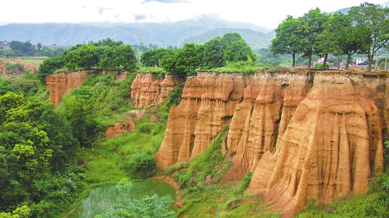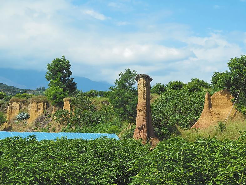 | 在新平縣漠沙鎮(zhèn)曼勒村的田疇間,矗立著一座赭黃色的“城堡”,千百年來(lái)靜靜聆聽(tīng)南渡河里的濤聲。這座“城堡”就是新平漠沙土林,分布在約2平方公里的土地上,黃土在風(fēng)雨中被塑造成錐、劍、少女、迷宮……將時(shí)光的紋路刻進(jìn)每一道溝壑;而花腰傣服飾與神牛斗惡龍的傳說(shuō),又為這片土林披上了一層神秘的面紗。 10月底,記者來(lái)到被陽(yáng)光與江水浸染得格外風(fēng)情萬(wàn)種的花腰傣之鄉(xiāng)——漠沙鎮(zhèn)。當(dāng)記者循著元漠公路向曼勒村方向行駛約4公里,一片由黃土構(gòu)筑、沉默而壯麗的奇觀猝不及防地闖入眼簾,這便是漠沙土林——一座被時(shí)光雕琢的露天博物館,大地上無(wú)聲的詩(shī)行。 土柱拔地而起直插蒼穹 踏入漠沙土林,仿佛瞬間被拋入一個(gè)與外界截然不同的時(shí)空。眼前不再是新平常見(jiàn)的蔥郁青山,而是一片由黃土堆砌而成、溝壑縱橫的奇異世界。這片面積約2平方公里的土地上,數(shù)以千計(jì)的土柱拔地而起,它們高5至10米,宛如一座樓房,以沉默而堅(jiān)定的姿態(tài),分割著天空。它們有的孤直如筆,直插淺藍(lán)的蒼穹;有的簇?fù)沓扇?,褶皺里裹著耐旱的雜草與灌木;更有柱體如石窟般層疊堆積,如少女亭亭,凝望著漠沙江的流水。 土林是雨水沖刷和風(fēng)化作用精心打磨的作品。它們的土壤主要由黃土構(gòu)成,較為松散,在億萬(wàn)年的風(fēng)雨侵蝕下,松軟的部分消失了,堅(jiān)硬的核心留了下來(lái),最終形成了如今這般高聳的土柱群。它們形似破土而出的竹筍,又如指向蒼穹的利劍,更似一座座微縮的寶塔尖頂。每一根土柱都是大地的筆觸,那深淺不一的溝壑是歲月刻下的年輪,記錄著四季的更替:旱季時(shí),土色焦?jié)?,呈現(xiàn)出一種飽經(jīng)風(fēng)霜的堅(jiān)韌;雨季來(lái)臨時(shí),雨水浸潤(rùn),土柱又會(huì)洇出柔潤(rùn)的色澤,仿佛被賦予了新的生命。漫步其間,想象力會(huì)被無(wú)限激發(fā)。它們不再是冰冷的土堆,而是被自然賦予了靈魂的藝術(shù)品,好似一座結(jié)構(gòu)復(fù)雜的古堡迷宮式建筑。 一片有靈性的土地 漠沙土林的獨(dú)特魅力,不僅在于其自身的滄桑與壯美,更在于它與當(dāng)?shù)卮迕竦钠婷罟采P(guān)系。土林的邊緣,是整齊的田疇。新綠的作物,如甘蔗、蔬菜等,生機(jī)勃勃,它們的葉子幾乎要蹭到土林斑駁的“裙邊”。這是一幅極具張力的畫面:一邊是歷經(jīng)千萬(wàn)年才形成的荒野奇觀,代表著永恒與自然之力;另一邊是當(dāng)下最鮮活的煙火氣息,代表著生存與希望。 風(fēng)過(guò)處,草葉搖曳著碎光,土柱依舊沉默如碑,它們堅(jiān)硬的輪廓在光影的變幻中似乎也柔軟下來(lái),露出了被歲月摩挲出的溫潤(rùn)。這里不僅是攝影愛(ài)好者追光逐影的天堂,也是戶外運(yùn)動(dòng)者探索自然的樂(lè)土。然而,賦予這片土地以靈性的,是根植于此、豐富多彩的花腰傣文化。 當(dāng)身著傳統(tǒng)服飾、婀娜多姿的小卜少(傣族少女)穿梭于千姿百態(tài)的土林間時(shí),那幅畫面充滿了超現(xiàn)實(shí)的美感。古老的土林與鮮活的生命、滄桑的地貌與絢麗的民族文化,在此刻完美交融,仿佛將人帶入一個(gè)亦真亦幻的神秘境界。土林,因此不再僅僅是地質(zhì)的奇觀,更成為承載民族文化與傳說(shuō)的容器。 神牛斗惡龍的傳說(shuō) 關(guān)于漠沙的土林與牛頭山,在當(dāng)?shù)鼗ㄑ鋈酥校€流傳著一個(gè)代代相傳的神牛斗惡龍的傳說(shuō)。漠沙鎮(zhèn)黨群服務(wù)中心副主任白劍的講述,為記者掀開(kāi)了這片土地上的那層神秘面紗。 相傳在很久以前,漠沙壩子是美麗富饒的人間仙境。這里稻花飄香,甘蔗成林,四季瓜果不斷?;ㄑ龅那嗄昴信邙P尾竹下載歌載舞,人民生活安寧而富足。然而,這樣祥和平靜的生活被漠沙江中的一條黑龍看在眼中,它很快起了歹心,意圖霸占這片樂(lè)土,于是派遣無(wú)數(shù)龜兵蝦將搬運(yùn)土石,堵塞江水。江水一天天猛漲,最終美麗的漠沙壩淪為一片汪洋,花腰傣人民被迫背井離鄉(xiāng)。黑龍則在水中建起了富麗堂皇的宮殿,得意揚(yáng)揚(yáng)。 人民的苦難被南渡河的河神看在眼里,他收集了黑龍傷天害理的證據(jù),直上天庭告發(fā)。天庭神仙震怒,派遣一頭神勇無(wú)比的大黑水牛下凡收服黑龍。大黑水牛怒吼著沖入江中,與黑龍展開(kāi)了一場(chǎng)驚天動(dòng)地的搏斗。霎時(shí),地動(dòng)山搖,電閃雷鳴。大黑水牛憑借其神力與勇猛,用堅(jiān)硬的犄角刺破了黑龍的右眼。黑龍遍體鱗傷,血流成河,最終狼狽逃竄。 戰(zhàn)勝黑龍后,大黑水牛并未停歇。它用雙角掀翻了堵在江上的壩埂,滔滔江水奔涌而下,露出了龍宮。接著,它轉(zhuǎn)身沖向龍宮,將其徹底搗毀,只留下遍地殘?jiān)珨啾?。江水退去,美麗的漠沙壩重新顯現(xiàn)。逃難的花腰傣村民重返家園,重建房屋,平整田地,栽種莊稼,又過(guò)上了五谷豐登、六畜興旺的好日子。 然而,大黑水牛心系此地百姓,生怕黑龍去而復(fù)返,讓人民再遭劫難。于是,它毅然決定永駐此地,死守在漠沙江邊。日復(fù)一日,年復(fù)一年,它的身軀慢慢化作了一座巍峨的大山,這便是今天的牛頭山。而從遠(yuǎn)處望去,這座山恰似一頭巨牛臥于水中,永遠(yuǎn)守護(hù)著這片土地。而那被它搗毀的龍宮,則在歲月