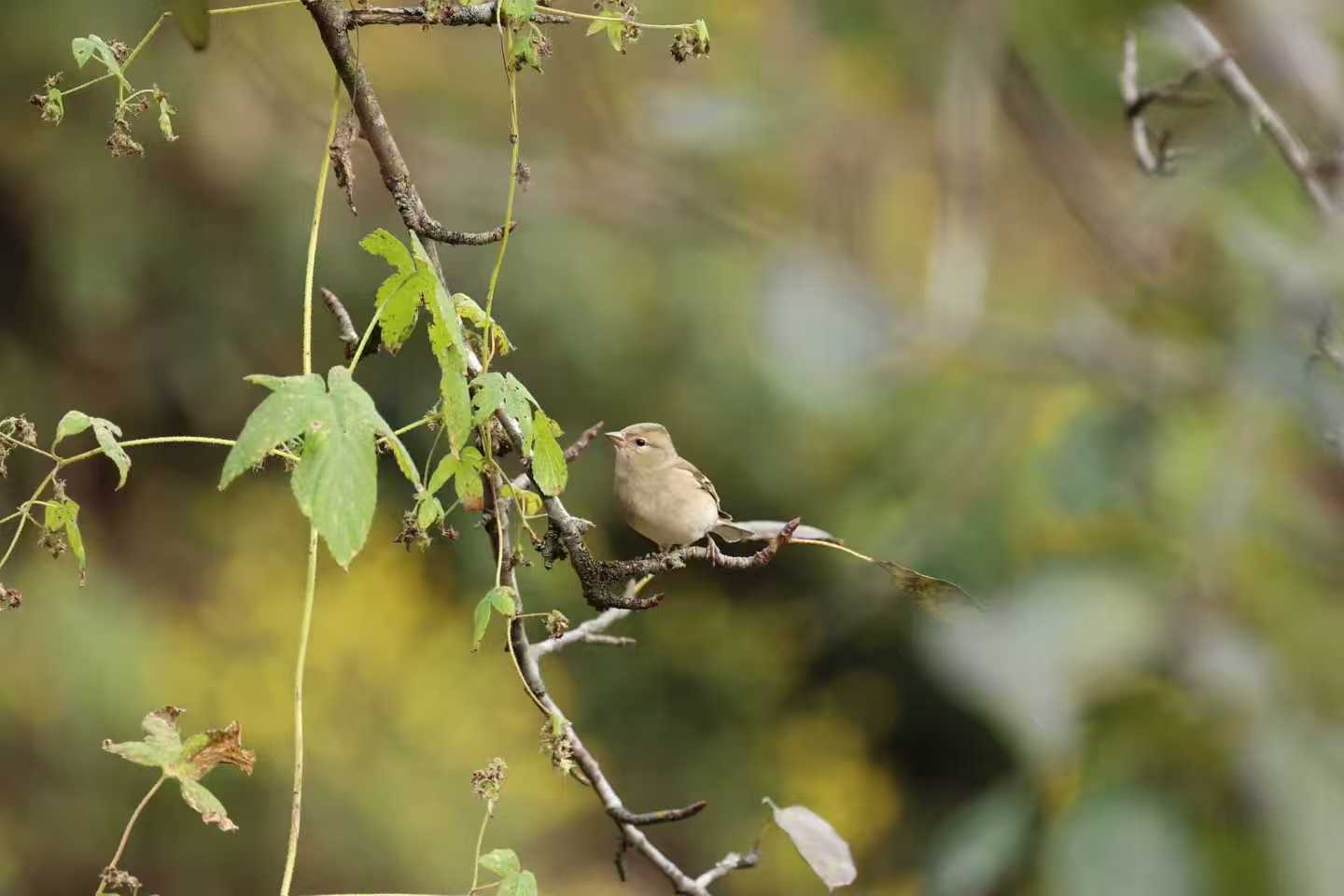11月2日下午3時44分,神農(nóng)架國家公園管理局工程師馬國飛在木魚鎮(zhèn)龍降坪槐樹屋場附近的茶園田坎溝進行鳥類調(diào)查時,發(fā)現(xiàn)一只混于“鳥浪”中的特殊燕雀。其體色淺淡、肩斑醒目的特征與常見燕雀存在明顯差異。經(jīng)連續(xù)追蹤拍攝并對照專業(yè)資料,初步判斷為蒼頭燕雀。隨后經(jīng)鳥類專家雷老師確認,該個體為蒼頭燕雀指名亞種(Fringilla coelebs coelebs),系神農(nóng)架地區(qū)首次記錄。