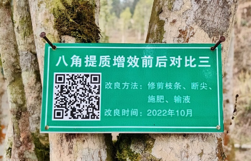 木廠鎮(zhèn)素有“八角之鄉(xiāng)”美譽(yù),現(xiàn)存八角樹超100萬(wàn)株,部分古樹樹齡逾百年。過去因樹老、管護(hù)差,導(dǎo)致掛果率低、產(chǎn)量持續(xù)低迷。為守護(hù)這份“綠色遺產(chǎn)”,當(dāng)?shù)蒯槍?duì)性實(shí)施“古樹復(fù)壯工程”,通過采取科學(xué)修剪枯枝、縮冠減耗,用腐殖土改土、滴灌補(bǔ)水,讓古樹重?zé)ㄉ鷻C(jī)。種植戶楊春益家的古樹改良后,最高年產(chǎn)1400多斤,收入顯著提升。