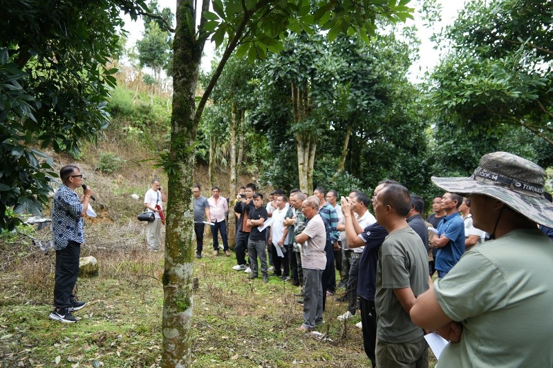 為守護(hù)百年八角產(chǎn)業(yè)根基、助力提質(zhì)增產(chǎn),馬關(guān)縣農(nóng)業(yè)農(nóng)村和科學(xué)技術(shù)局建立常態(tài)化技術(shù)幫扶機(jī)制,每年定期組織農(nóng)業(yè)專家深入木廠鎮(zhèn)一線,為種植戶開展“理論 實(shí)操”培訓(xùn),講解古樹復(fù)壯、病蟲害防治等知識(shí),現(xiàn)場(chǎng)演示修剪、施肥等操作。種植戶楊方兵說:“專家手把手教,我們學(xué)得快,對(duì)增產(chǎn)更有信心。”鎮(zhèn)里還打造3個(gè)共830畝的高標(biāo)準(zhǔn)示范基地,應(yīng)用“矮化嫁接”“水肥一體化”技術(shù),2025年示范基地畝產(chǎn)較傳統(tǒng)種植增產(chǎn)800%,畝均年增收8000余元。