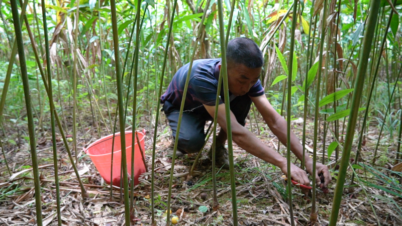 “左手扶藤,右手掐枝,動(dòng)作要快才不損果?!敝新浯宸N植戶胡廷富踩著晨露鉆進(jìn)8畝砂仁地,鞋尖還沾著草葉上的水珠,嫻熟的動(dòng)作間,小桶里的砂仁很快堆起“小山”。他抹了把汗,指尖蹭過額頭的潮氣,臉上滿是笑意:“種了3年多,今年預(yù)計(jì)能掙三萬多元?!痹捳Z落地時(shí),還順手晃了晃滿桶的砂仁,果子碰撞著發(fā)出細(xì)碎聲響,滿是豐收的踏實(shí)。