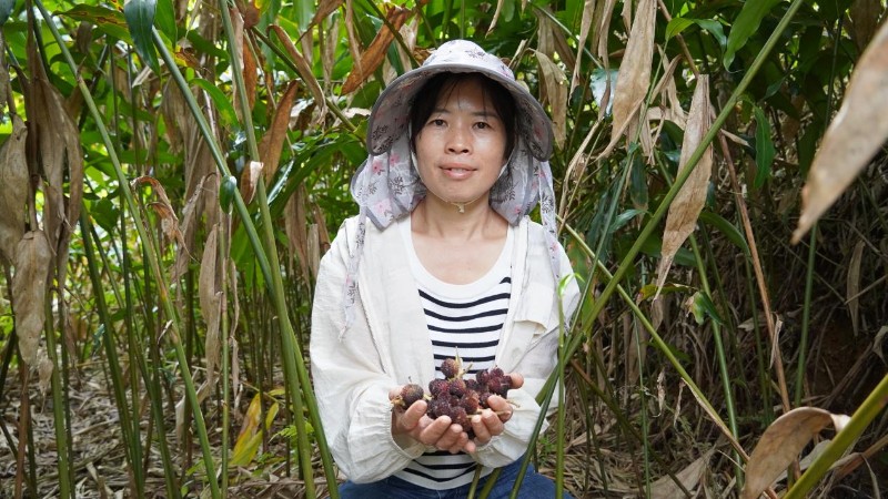 這份喜悅,更藏在“家門口”的便利里。下落村的賀德花手捧剛摘下的砂仁,掌心被果子的潮氣浸得微涼,辛香順著指縫往外溢:“我們村三分之二農(nóng)戶都種砂仁,每天下午4點(diǎn),收購老板準(zhǔn)時(shí)來村口,不用跑遠(yuǎn)路,新鮮果子轉(zhuǎn)眼就能變現(xiàn)?!彼闫鹳~來格外開心,指尖點(diǎn)著桶里的砂仁:“摘得最多的一天,光賣砂仁就掙了4000多元!”此時(shí)的村口,農(nóng)戶們提著滿桶砂仁聚集,塑料桶碰撞聲、稱重時(shí)的報(bào)數(shù)聲、收款到賬的提示聲裹著笑語,成了山間最熱鬧的風(fēng)景。