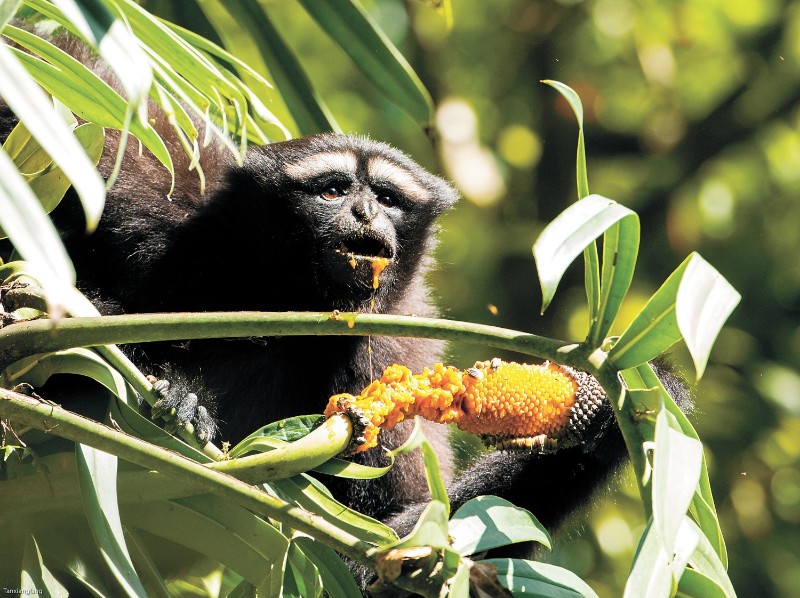 高黎貢白眉長臂猿取食過江龍果實。譚祥芳攝