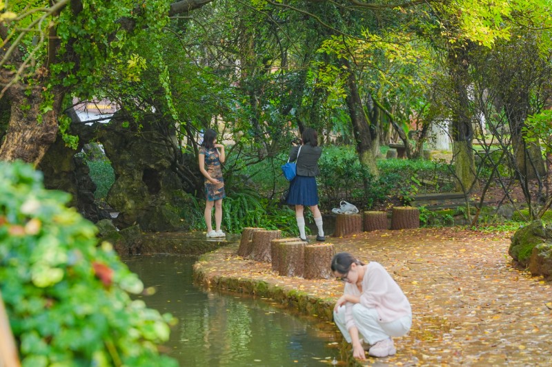 三大園區(qū)各自呈現(xiàn)出截然不同的秋日風情與文化特色。871文化創(chuàng)意工場以“古韻新創(chuàng),潮玩國風”為定位,10月18日起推出了特別體驗活動。在無非堂馮少華中醫(yī)館,參觀者不僅能聆聽中醫(yī)歷史文化講解,參觀歷史器具展,還能親手辨識中草藥,并參與楓葉茶的功效講解與品鑒活動。幾兩屐書店里的非遺甲馬印制活動讓游客有機會學習并親手體驗這一傳統(tǒng)技藝的制作工序。拾雅弓射箭館內的專業(yè)指導員則會講解傳統(tǒng)弓的使用技巧,游客可親身拉弓體驗,感受傳統(tǒng)射藝的魅力。