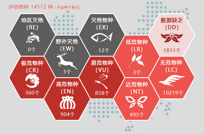 在中國內(nèi)地的物種評估中,紅色名錄共涵蓋了12,553種物種,其中1,829種被認(rèn)定為面臨滅絕威脅。