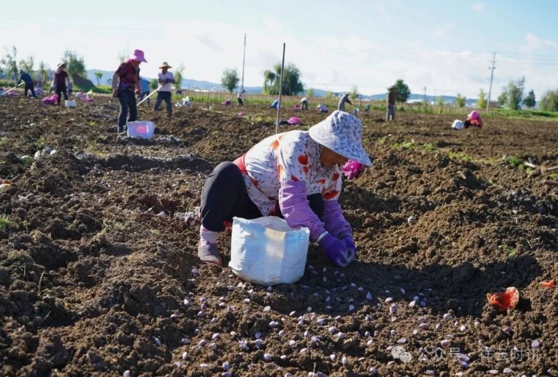 寒露時(shí)節(jié),云南驛鎮(zhèn)左所村的田野上,隨處可見農(nóng)戶們忙碌的身影,新一年的種蒜熱潮全面掀起,田間地頭一派繁忙的景象。