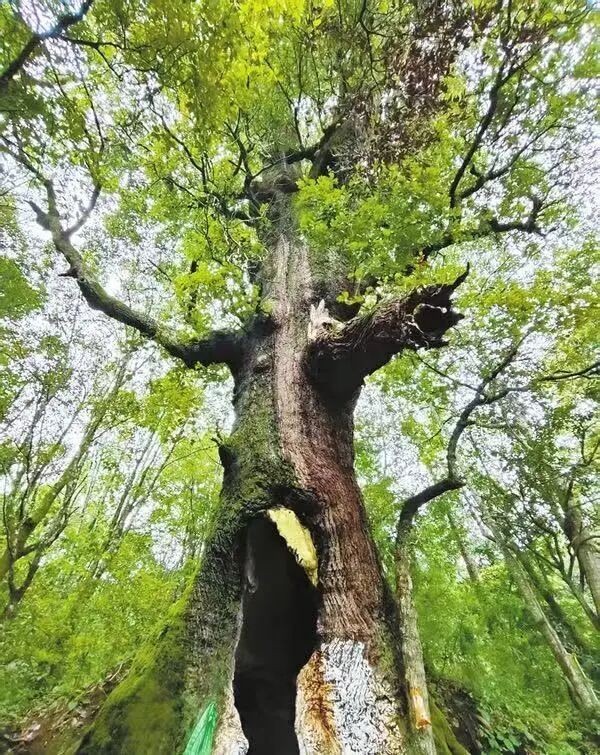 “這株高山栲又名空心樹,距今已有1700年?!痹谠颇鲜〈罄戆鬃遄灾沃葙e川縣雞足山,賓川縣林業(yè)和草原局副局長黃建勛指著一株高山栲對記者介紹。這株高山栲樹高18米、胸徑4.5米,如一個巨人挺立崖邊,威風(fēng)凜凜。盡管枝干殘缺,樹干底部還有個3.5米高的樹洞,但依然不減其威猛,千年古樹生生不息的氣韻迎面而來。