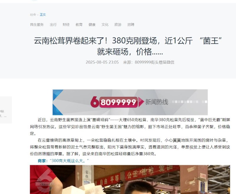 1528、近1公斤 “菌王” 就來砸場 【YNTV-1 云南新聞聯(lián)播8月5日】 https://zi