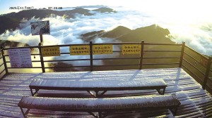 景區(qū)監(jiān)控視頻顯示,降雪過后,轎頂觀景臺(tái)等地已覆蓋上一層薄薄的白色積雪,山色空蒙,景致別樣。至4日清晨7時(shí),轎頂區(qū)域在持續(xù)低溫下,首場(chǎng)積雪得以保留。此時(shí),天際泛起金色霞光,與翻涌的云海、潔白的積雪交相輝映,形成“晨光、云海、冰雪”同框的難得景象。