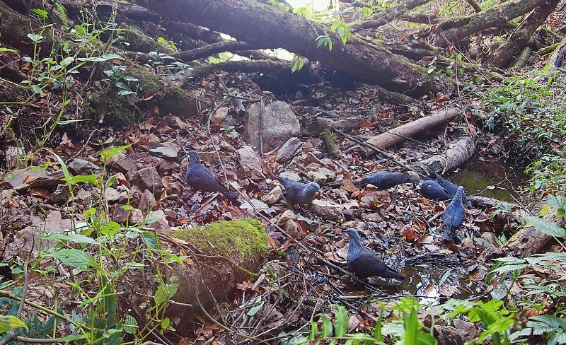 近日,云南省保山市龍陵小黑山省級(jí)自然保護(hù)區(qū)的工作人員在開(kāi)展野生動(dòng)物監(jiān)測(cè)時(shí),意外發(fā)現(xiàn)紅外相機(jī)捕捉到鳥(niǎo)獸歡聚一“塘”的罕見(jiàn)畫(huà)面。