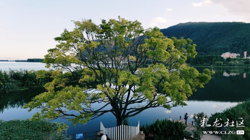 昆明滇池濕地畔,滇樸樹靜立水邊,守望湖光山色。